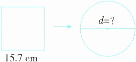 $15.7×4÷3.14=20(cm)$ 答:这个圆的直径是20 cm。 解析:把正方形拉成一个圆时的铁丝长度不变,也就是周长不变。