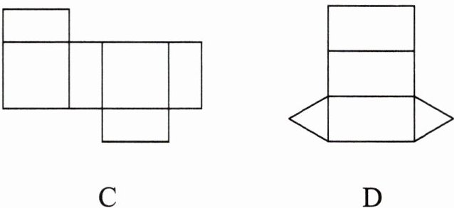 6. 下列图形中,能通过折叠围成一个三棱柱的是(