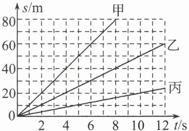 (3)他们同时向南出发,由图像可知,甲运动5m时,以甲为参照物,其他两人向