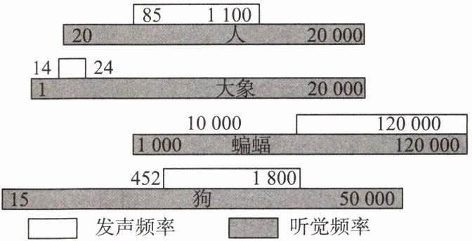 B.狗的听觉频率范围是 $15\sim 50000Hz$