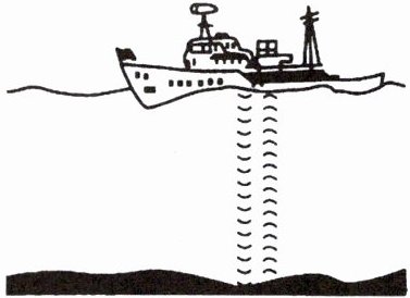 4. 某海域有着丰富的海底珊瑚资源,某次科考队员利用超声测距仪向海底垂直发射超声波,如图所示,经0.1s后收到回波。如果海水中超声波的平均速度为1500m/s,求: