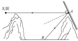9. 工程师在位置 A 处安装平面镜,使广场中心 B 处被照亮。若太阳位于图中所在位置,请在 A 处添加平面镜并完成光路图,保留作图痕迹。