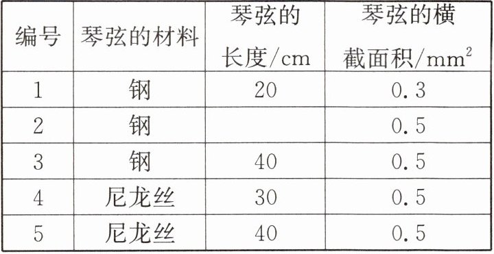 |编号|琴弦的材料|琴弦的长度/cm|琴弦的横截面积$/mm^2$|