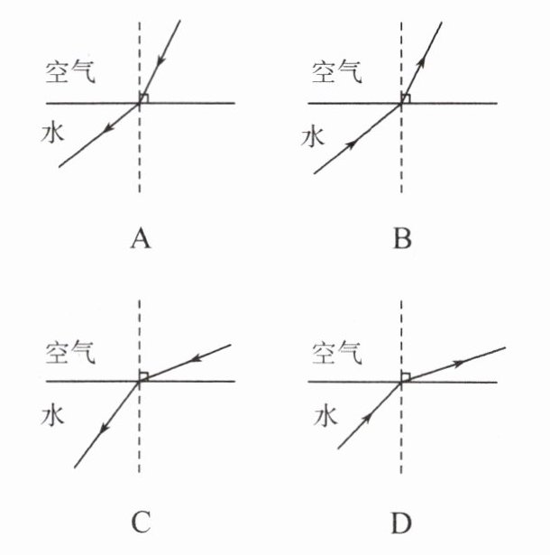 5. 放满水的游泳池池底看起来很浅,但同学们不能随便下水嬉戏。以下四幅光路图中,能正确说明产生这一现象的原因的是(