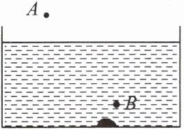 3. 如图所示,玻璃缸底部$C$点处有一红宝石($C$点未画出),人眼在$A点看到红宝石在B$点,要使从$A$点射出的一束激光照到缸底红宝石上,激光应射向(