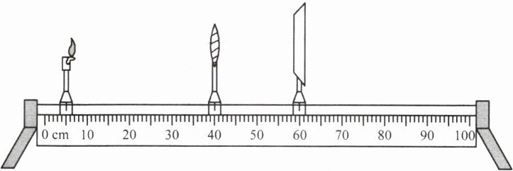 5. (多选)如图所示,小明将凸透镜($ f = 10 \, cm $)固定在光具座 $ 40 \, cm $ 的位置,探究凸透镜的成像规律。下列说法正确的是(