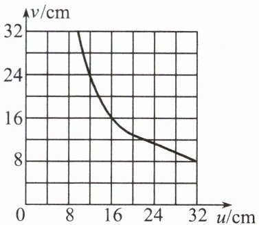 2. 在探究凸透镜成像的规律时,根据实验数据绘制的物距 $ u $ 和像距 $ v $ 之间的关系如图所示。下列说法正确的是(