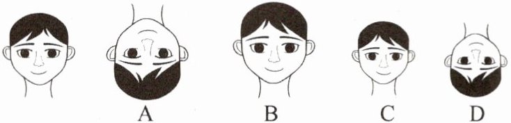 1. 如图为某同学的脸庞外形和大小。他在我们眼睛的视网膜上所形成的像是(
