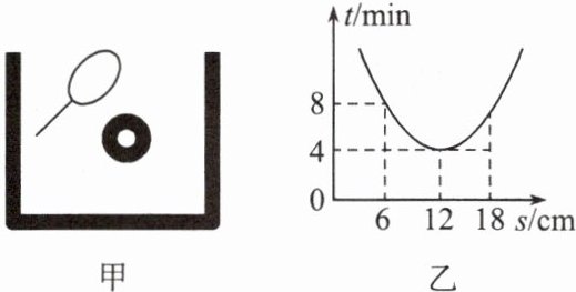 (1)小明想知道某块凸透镜的焦距,进行如图甲所示的操作(将镜面正对着太阳光,在凸透镜下方放置一张白纸,且凸透镜与白纸保持平行),测出凸透镜与白纸间距s与对应的白纸被烤焦的时间t,绘出图乙,可判断该透镜的焦距为