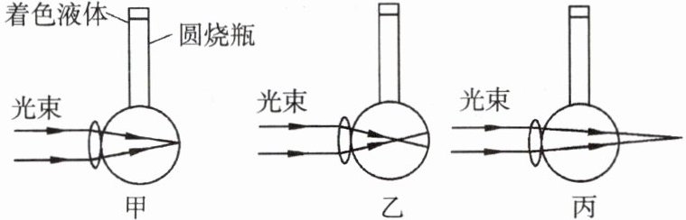 ,着色液体则表示玻璃体。(2)用平行光束照射每个眼睛模型,根据光束聚焦的位置可以确定图甲是