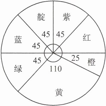 ① 将三合板或硬纸做成直径约 $30\ cm$ 的圆板,圆板的中心有一孔,可以套在转台的转轴上,用螺丝夹紧后,由皮带传动绕轴转动。圆板的正面按图所示的顺序和比例贴上七种颜色的蜡光纸。