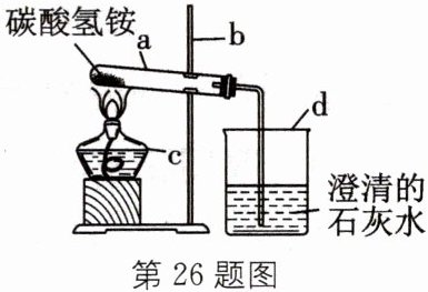 26. 如图为加热碳酸氢铵的实验装置,试回答下列问题。