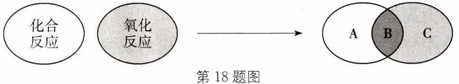 18. 郝亮同学在学习了氧化反应和化合反应的概念后,为体现两个概念之间的关系,他设计出如图所示的关系图。
