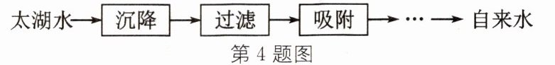 4. 由太湖水生产自来水的部分处理过程如下。下列说法不正确的是(
