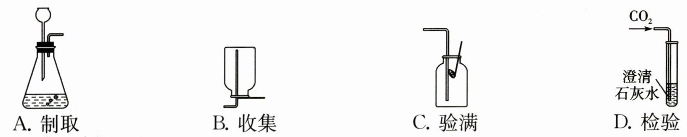 7. 下列制取、收集、验满、检验$CO_2$的装置和原理能达到实验目的的是(