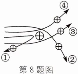 8. 1911年英国科学家卢瑟福进行了著名的α粒子轰击金属箔实验。当α粒子轰击金属箔时,如图所示的运动轨迹全部错误的是(