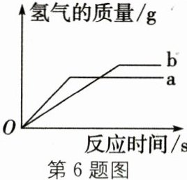6. 等质量的a和b两种金属(已知a和b在生成物中的化合价均为+2)分别和足量的同体积、同浓度的盐酸反应,产生气体的质量与时间的关系如图所示。下列说法错误的是(