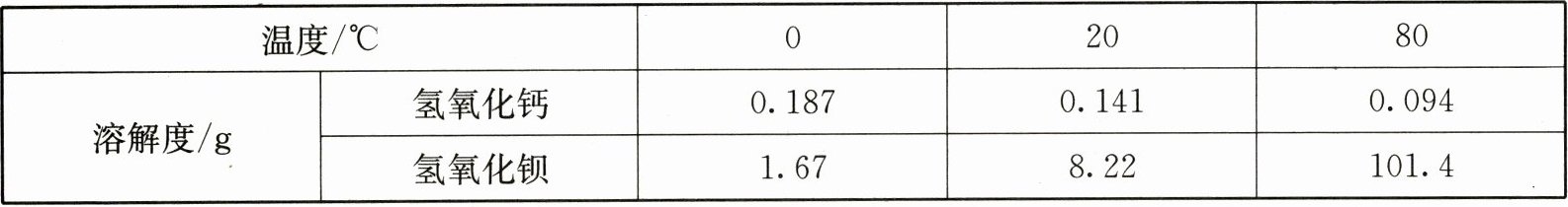 17. (4分)氢氧化钙和氢氧化钡的溶解度如下表所示。