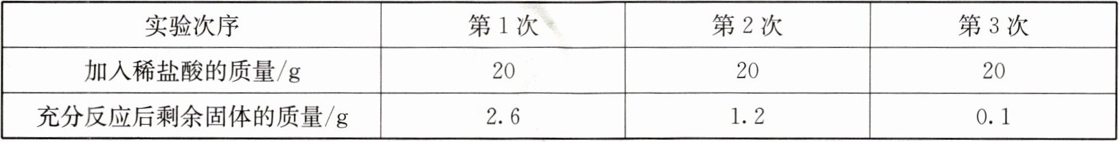 |充分反应后剩余固体的质量/g|2.6|1.2|0.1|