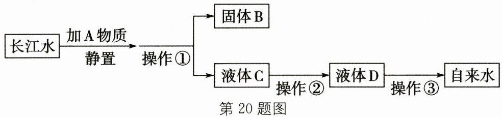 20. (9分)小刚收集到一瓶浑浊的长江水,他要模拟自来水厂的净水过程,最终制成自来水。其实验过程如图所示: