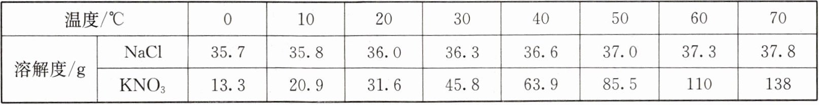 13. 根据$NaCl和KNO_{3}$的溶解度数据表,回答下列问题: