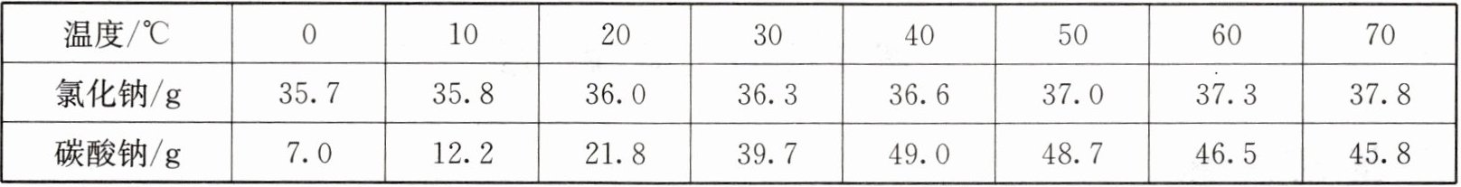 |溶解度/gNaCl|35.7|36.0|36.6|37.3|38.4|
