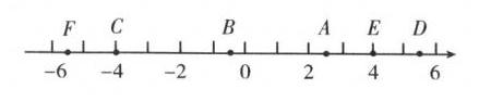 10. 在数轴上,若点 A,B,C,D 分别表示 $-(-\frac{5}{2})$,$-(+\frac{1}{2})$,+(-4),$+(+5\frac{1}{2})$,点 E,F 分别表示 +(-4)的相反数与 $+(+5\frac{1}{2})$的相反数,请画出数轴,并在数轴上标出点 A,B,C,D,E,F.