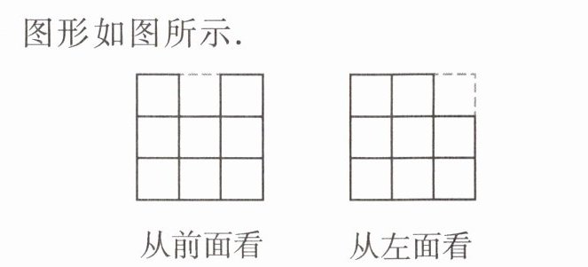 (1)请分别在网格中画出从前面、左面看到的该立体图形的平面图形;(用笔将对应的虚线描为实线即可)
