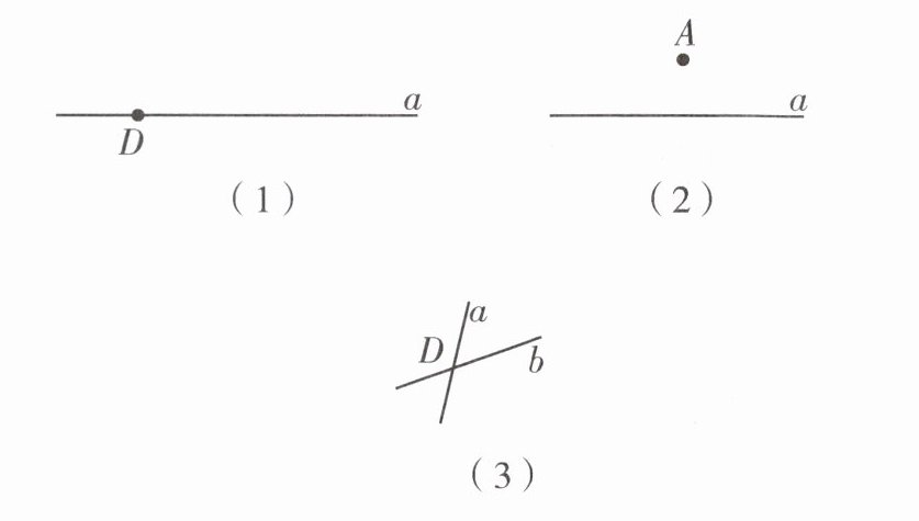 用适当的语句表述图中点与直线或直线与直线的关系.