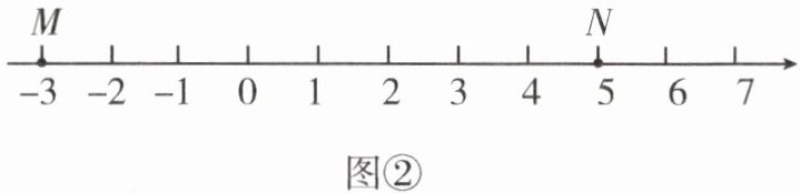 如图②,$M$,$N$为数轴上两点,点$M所表示的数为-3$,点$N$所表示的数为5。