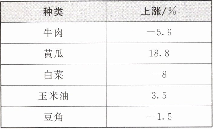 解(1)实际价格上涨了的商品:黄瓜、玉米油.(2)实际价格下降了的商品:牛肉、白菜、豆角.