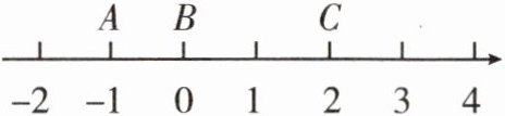 8. 数轴上线段的长度可以用线段右端点表示的数减左端点表示的数得到,如图,线段 $ AB $ 的长度为 $ 0 - (-1) = 1 $;线段 $ BC $ 的长度为 $ 2 - 0 = 2 $;线段 $ AC $ 的长度为 $ 2 - (-1) = 3 $.