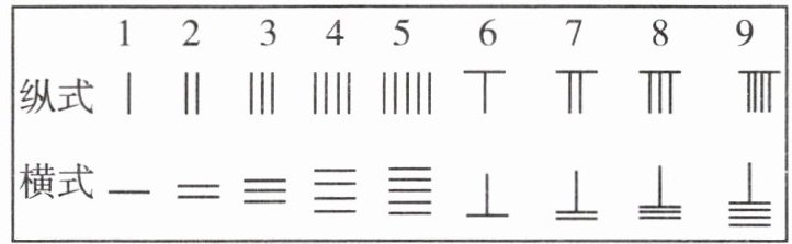6. 我国在数的发展上有辉煌的成就,古代有算筹记数法,算筹是竹制的小棍,摆法有纵式和横式两种,如图. 以算筹计数的方法是:摆个位为纵,十位为横,百位为纵,千位为横,……这样纵横依次交替,0 以空置方式表示. 如 3 257 表示成“≡ || ≡ 〢”. 算筹“〣 ⊥ ||||”所表示的数是