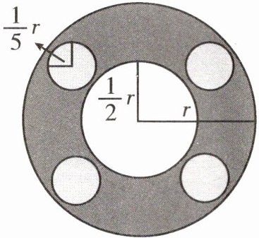 解 (1) 阴影部分的面积为 $ \pi r^{2} - \pi×(\frac{1}{2}r)^{2} - \pi×(\frac{1}{5}r)^{2}×4 $.