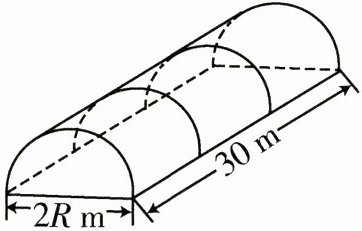 7. 如图,已知某全封闭塑料大棚的截面为半圆形,则大棚需要塑料膜的面积y(单位:m²)关于半径R(单位:m)的函数解析式是