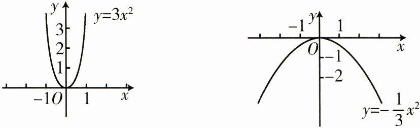 2. 根据函数 $ y = 3x^{2} $,$ y = -\frac{1}{3}x^{2} $ 的图象填空。