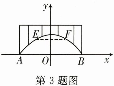 3. 某座下沿呈抛物线形的廊桥示意图如图所示,已知抛物线的函数解析式为$y=-\frac{1}{40}x^2+10$.为保护廊桥的安全,在该抛物线上距水面AB高为8m的点E,F处要安装两盏警示灯,则这两盏灯的水平距离EF是