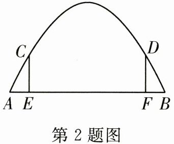 2. 校运会期间,某学校在运动场入口安装了一座充气拱门,拱门呈抛物线状(如图所示).数学小组想了解拱门的高度,先测量拱门底端距离$AB=8$m,再用两根长度为2m的标杆CE,DF垂直于地面且让标杆端点C,D在拱门上,再测量出两标杆间的距离$EF=6$m,则此拱门(不考虑拱门自身的粗细大小)的高度为(