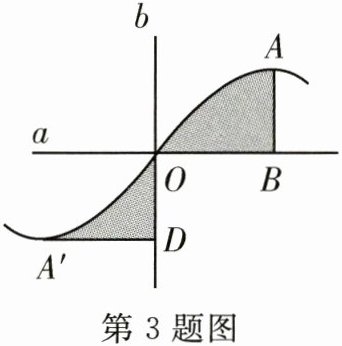 3. 如图,直线a⊥b,垂足为O,曲线OA与OA′关于点O对称,点A的对称点是点A′,AB⊥a于点B,A′D⊥b于点D.若OB = 3,OD = 2,则阴影部分的面积之和为