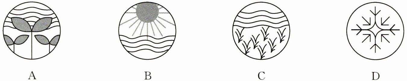 1. (传统文化)我国“二十四节气”已被列入联合国教科文组织人类非物质文化遗产代表作名录,下列四幅作品分别代表“立春”“立夏”“芒种”“大雪”,其中是中心对称图形的是(
