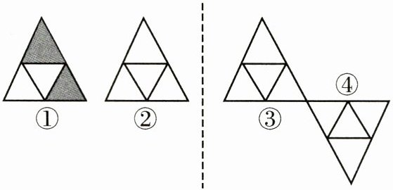 2. 按要求涂阴影:先将图形①平移到图形②,再将图形②沿图中虚线翻折到图形③,最后将图形③绕其右下方的顶点旋转 $180^{\circ}$ 得到图形④.