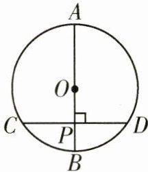 2. 如图,$\odot O$的直径$AB$垂直于弦$CD$,垂足为$P$,$BP = 2$,$CD = 6$,求$AB$的长.