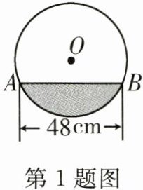 1. (广州)往直径为$52$ cm 的圆柱形容器内装入一些水以后,其截面示意图如图所示.若水面宽$AB = 48$ cm,则水的最大深度为(