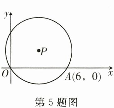 5. 如图,在平面直角坐标系中,$O$为坐标原点,点$P$在第一象限,$\odot P$与$x$轴交于$O$,$A$两点,点$A$的坐标为$(6,0)$,若$\odot P$的半径为$\sqrt{13}$,则点$P$的坐标为