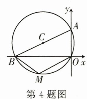 4. 如图,$\odot C$过坐标原点$O$,且与两坐标轴分别交于$A$,$B$两点,点$A$的坐标为$(0,3)$,$M$是第三象限内$\overset{\frown}{OB}$上一点,若$\angle BMO = 120^{\circ}$,则$\odot C$的半径为(
