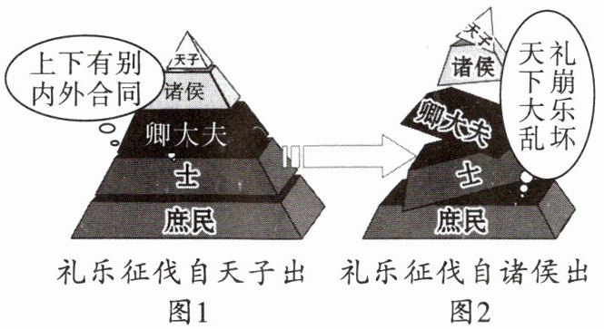 (1)图1:西周,图2:春秋时期(春秋战国时期)。信息:分封制逐步瓦解;周王室势力大减;诸侯崛起。