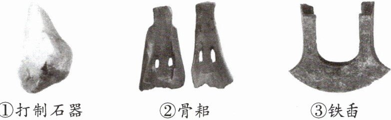 8. 下图展示了不同历史时期我国生产工具的变化。将其按照出现时间的先后顺序排列,正确的是(