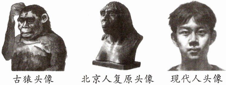 7. 比较“古猿头像”“北京人复原头像”“现代人头像”图片,可知北京人(