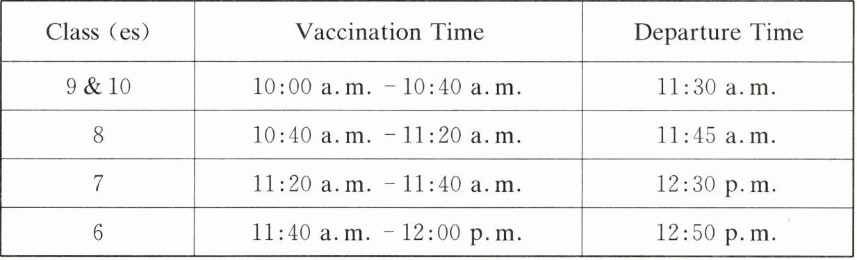 Students who didn’t register must show their Vaccination Certificate,or medical proof of being unsuitable for vaccination,and have normal classes until departure time.