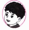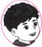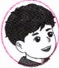He has short black hair and big eyes.